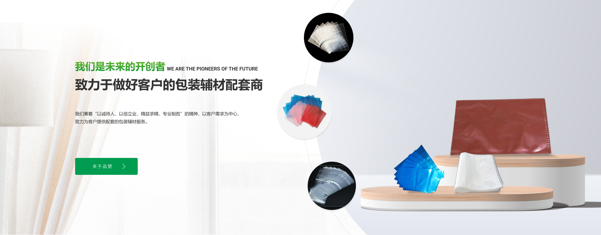 我們秉著“以誠待人,以信立業(yè),精益求精,專業(yè)制勝”的精神,以客戶需求為中心,致力為客戶提供配套的包裝輔材一體化服務(wù)。