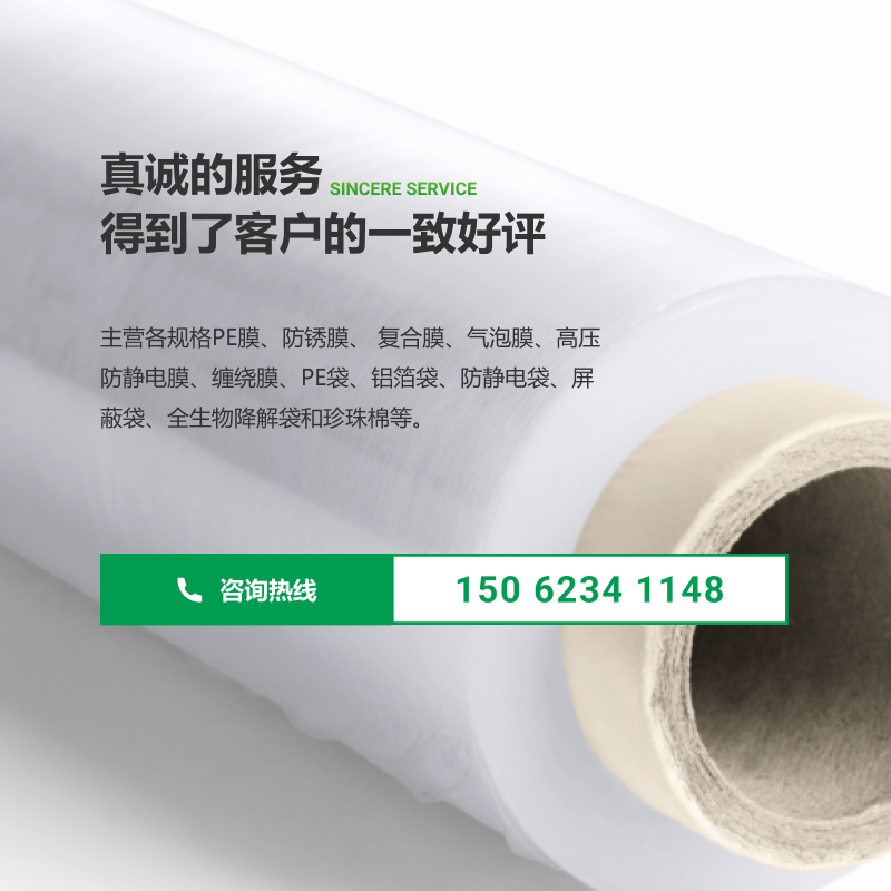 公司主營生產(chǎn)、銷售:各種類PE膜、高壓防銹膜、高壓防靜電膜、纏繞膜、氣泡膜;各類PE平口袋、PE方底袋(四方袋)、鋁塑方底袋、VCI防銹袋、防靜電袋、折邊袋、屏蔽袋、氣泡袋、印刷袋以及全生物降解袋等。